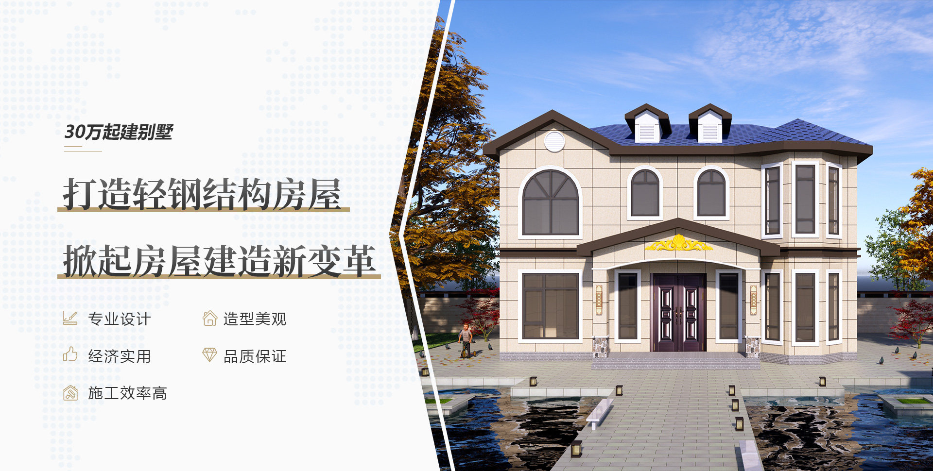 專業(yè)的設(shè)計師團隊,個性化定制輕鋼別墅高端住宅,擁有多年項目施工經(jīng)驗,完成上千套鋼結(jié)構(gòu)房屋的施工,完善的售后服務(wù),讓您建房無憂!